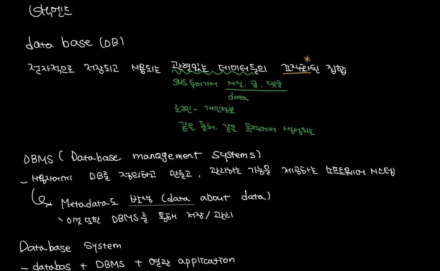 전자적으로(electronically) 저장되고 사용되는 관련있는(related) 데이터들의 조직화된 집합